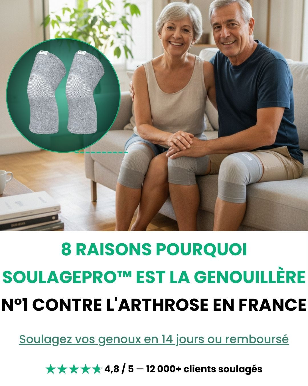 Rejoignez + 12 000 clients satisfaits de SoulagePro™, retrouvez la légèreté et la mobilité de vos genoux !